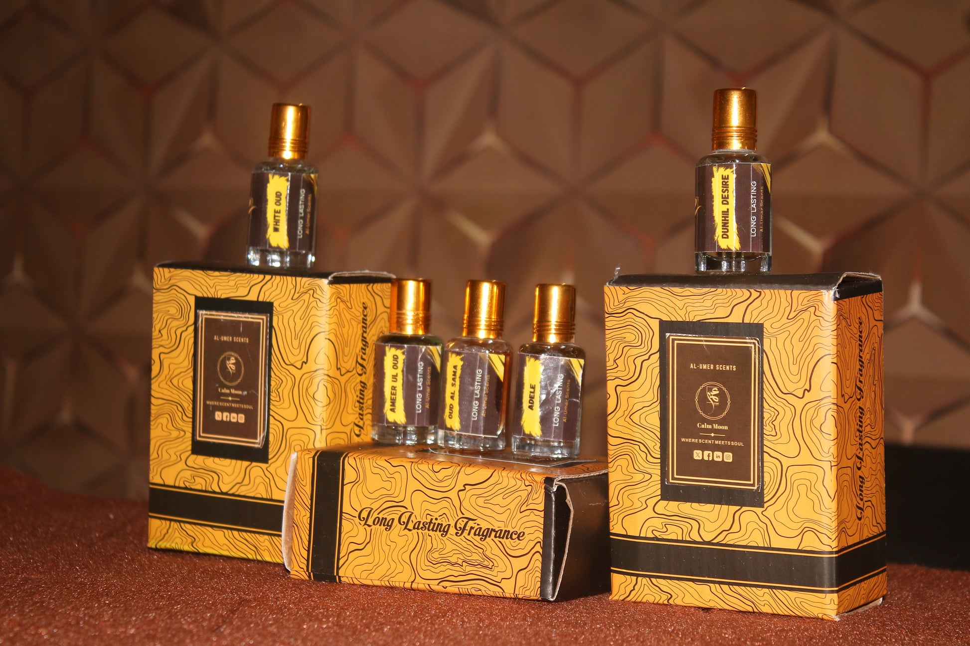 Apni khushbu ka aisa tajurba jo aapki personality ko ek naya roshan andaaz de! 5 Star Fragrances ke exclusive collection mein White Oud, Blue Oud, Ammer Ul Oud, Adele, aur Dunhil Desire shaamil hain—har ek apni misaal khud hai.